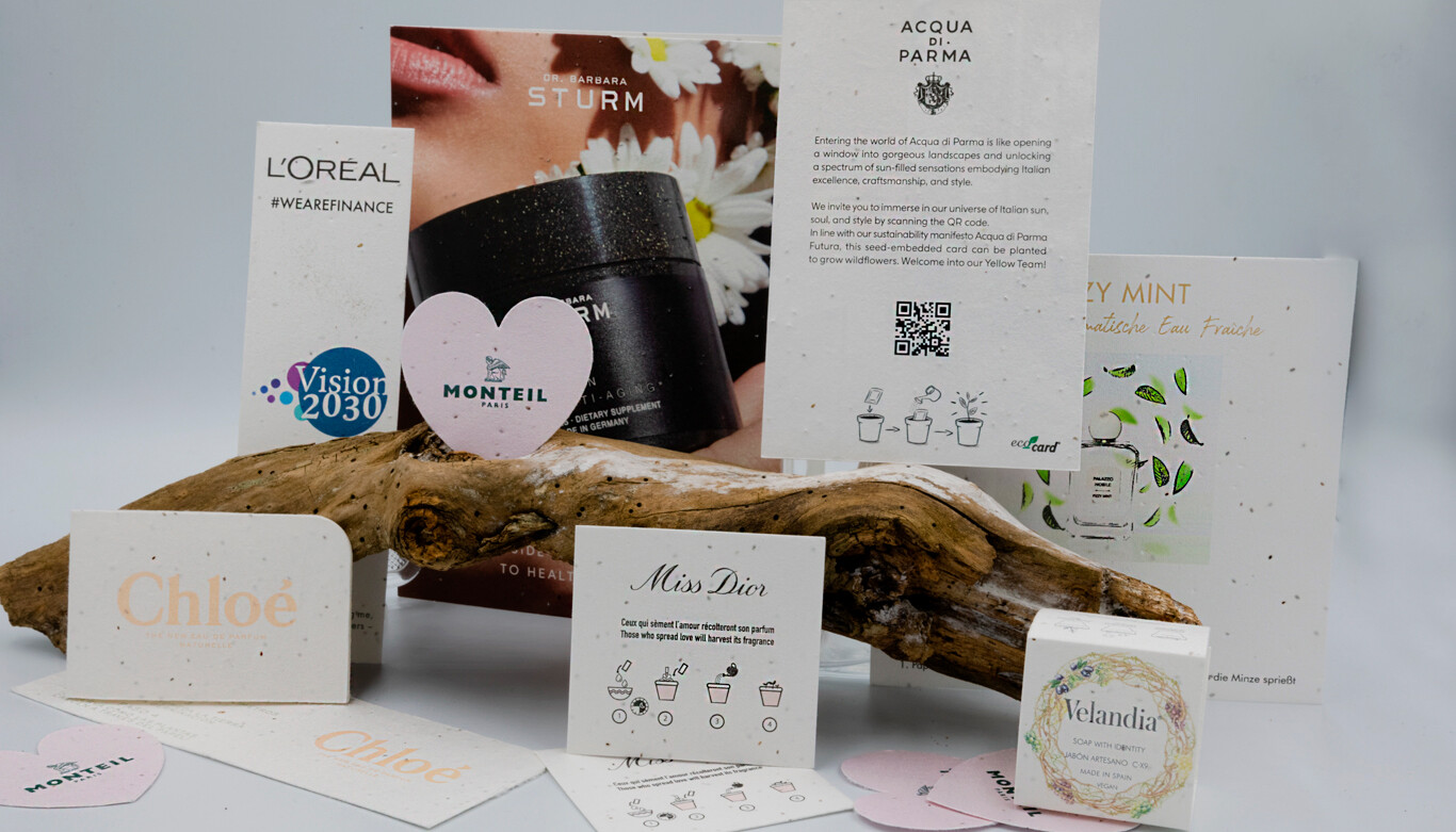Hemos realizado diferentes trabajos para múltiples marcas internacionales de la cosmética y la belleza. Es así como hemos notado que este sector se empieza a aDentar en la sostenibilidad, y creemos que no hay nada más sostenible y 100% biodegradable que nuestro papel con semillas. L’oreal, Gillette o Acqua di Parma ya han confiado en nosotros.